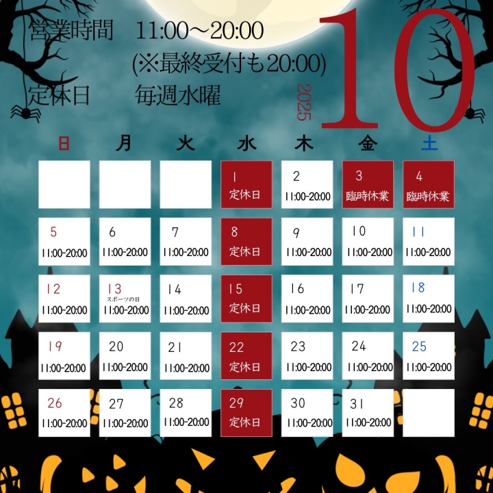 なお月末は、1年の焼き納め、年末年始旅行前の下地づくりのお客様など大変混みあうことが予想されますので、お早めのご利用のご協力をお願いいたします🙇