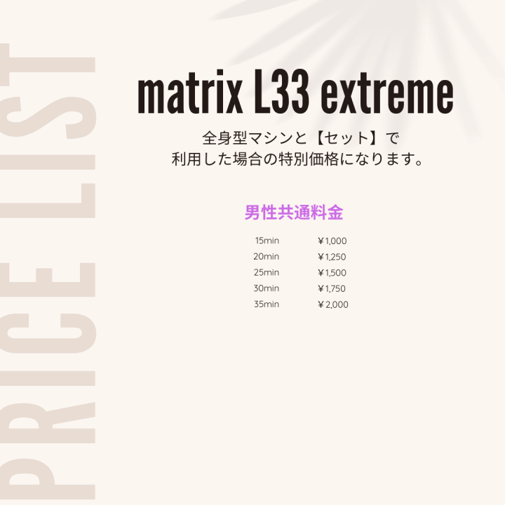 このマシンがもたらすのは、単なる日焼けではありません。強烈な光線が体の細胞機能までダイレクトに活性化させ、内側からエネルギーを呼び起こすような唯一無二のタンニング体験を提供します。