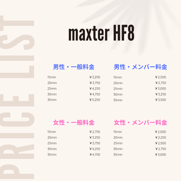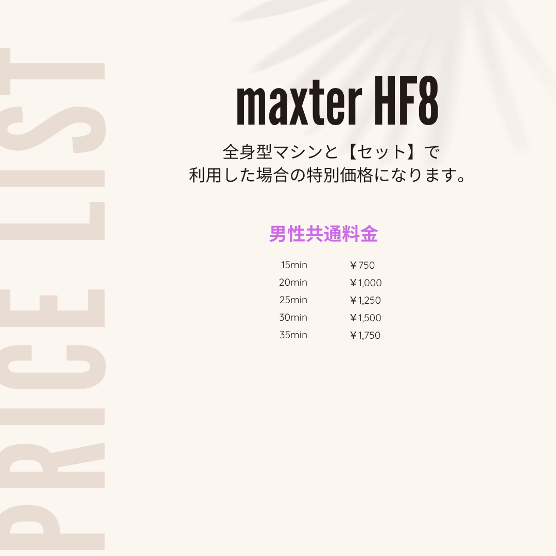 タンニングで最も色が抜けやすい顔、デコルテ、手先。そこを妥協しないのがマックスターHF8のスタイルです。