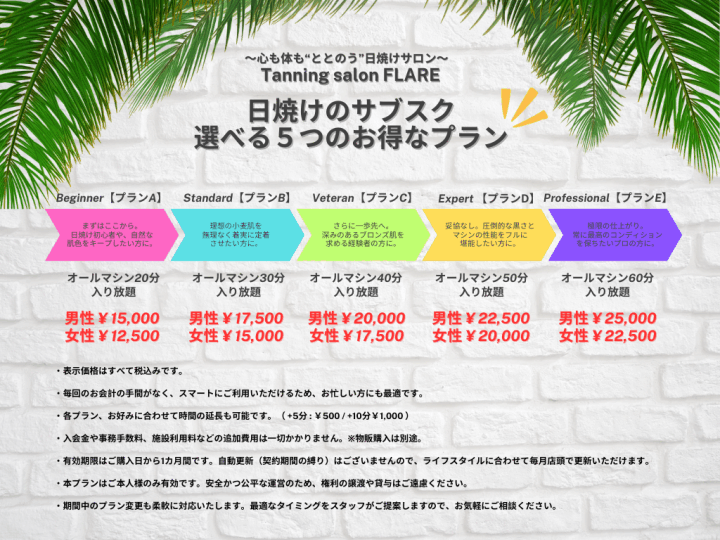 FLAREではあなたの理想を妥協なく追及していただくために、毎日でも通える特別なサブスクリプション・プランをご用意いたしました。